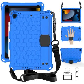 For iPad Air 2019 10.5 Honeycomb Design EVA + PC Four Corner Anti Falling Flat Protective Shell With Straps(Blue+Black)