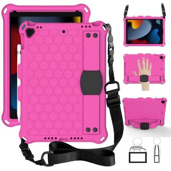 For iPad Air 2019 10.5 Honeycomb Design EVA + PC Four Corner Anti Falling Flat Protective Shell With Straps(RoseRed+Black)