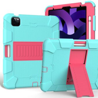 For iPad Air 2022 / 2020 10.9 Shockproof Two-Color Silicone Protective Case with Holder(Mint Green + Rose Red)