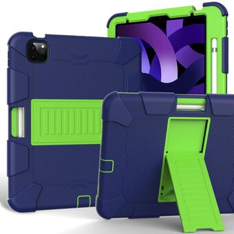For iPad Air 2022 / 2020 10.9 Shockproof Two-Color Silicone Protective Case with Holder(Navy Blue + Green)