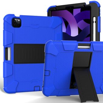 For iPad Air 2022 / 2020 10.9 Shockproof Two-Color Silicone Protective Case with Holder(Black + Blue)