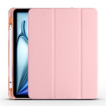 For iPad Air 11 2025 / 2024 3-fold TPU Leather Smart Tablet Case with Pen Slot(Pink)