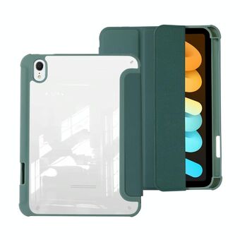 For iPad mini 2024 / mini 6 Acrylic 3-folding Leather Tablet Case(Dark Green)