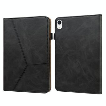 For iPad mini 6 / mini 2024 Solid Color Embossed Striped Leather Case(Black)