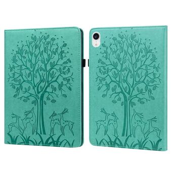 For iPad mini 6 / mini 2024 Tree & Deer Pattern Pressed Printing Leather Tablet Case(Green)