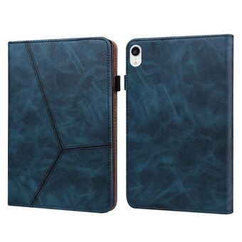 For iPad mini 6 / mini 2024 Solid Color Embossed Striped Leather Case(Blue)