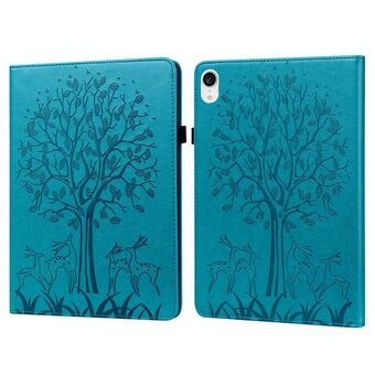 For iPad mini 6 / mini 2024 Tree & Deer Pattern Pressed Printing Leather Tablet Case(Blue)
