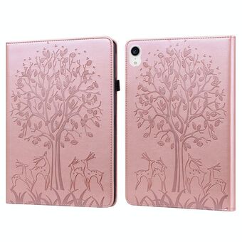 For iPad mini 6 / mini 2024 Tree & Deer Pattern Pressed Printing Leather Tablet Case(Pink)