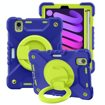 For iPad mini 2024 / mini 6 Silicone + PC Tablet Case with Strap & Holder & Pen Slot(Blue + Green)
