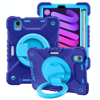 For iPad mini 2024 / mini 6 Silicone + PC Tablet Case with Strap & Holder & Pen Slot(Navy Blue + Blue)