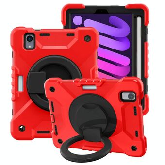 For iPad mini 2024 / mini 6 Silicone + PC Tablet Case with Strap & Holder & Pen Slot(Red + Black)