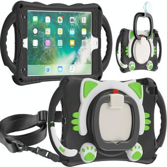 Cute Cat King Kids Shockproof Silicone Tablet Case with Holder & Shoulder Strap & Handle For iPad 9.7 2018 / 2017 / Air / Air 2 / Pro 9.7(Green)