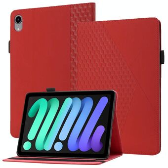 For iPad mini 2024 / mini 6 Rhombus Skin Feel Horizontal Flip Tablet Case with Card Slots & Holder & Sleep / Wake-up Function(Red)