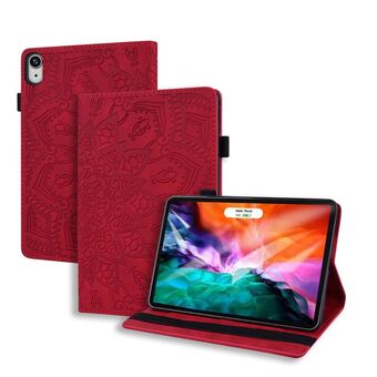 For iPad mini 2024 / mini 6 Calf Pattern Double Folding Design Embossed Leather Tablet Case with Holder & Card Slots & Pen Slot & Elastic Band(Red)