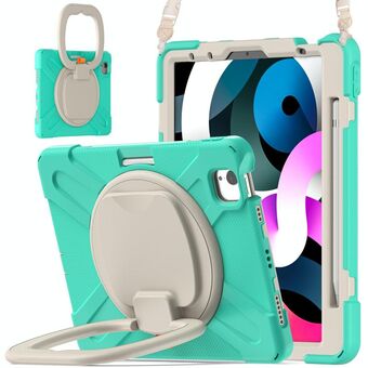 Silicone + PC Protective Case with Holder & Shoulder Strap For iPad Air 2022 / 2020 10.9(Mint Green)