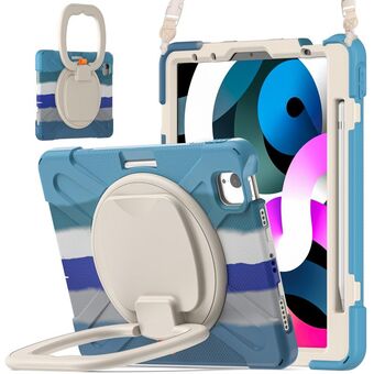 Silicone + PC Protective Case with Holder & Shoulder Strap For iPad Air 2022 / 2020 10.9(Colorful Blue)