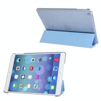 3-folding Leather Cover Frosted Plastic Case with Holder & Sleep / Wake-up Function for iPad Air (Blue)