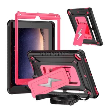 For iPad 9.7 2018 / Air / Air 2 Armor Bolt Shape Holder Silicone Hybrid PC Tablet Case(Black Rose Red)