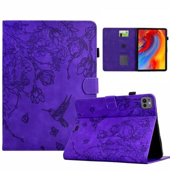 For iPad Air 11 2025 / 2024 / iPad Pro 11 Flowers and Bird Embossed Smart Leather Tablet Case(Purple)