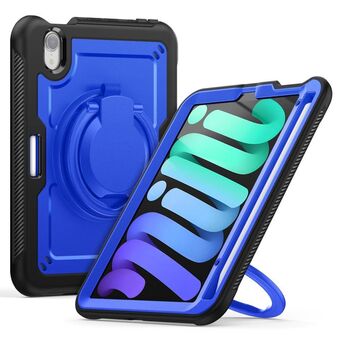 For iPad mini 2024 / mini 6 Honeycomb Hybrid Tablet Case with Handle Holder & Strap(Dark Blue)