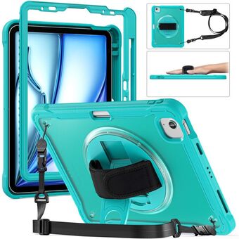 For iPad Air 11 2025 / 2024 Heavy Duty Hybrid Tablet Case with Hand Grip & Strap(Light Blue)