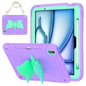 For iPad Air 11 2025 / 2024 Kickstand PC Hybrid Silicone Tablet Case with Strap(Purple Mint)