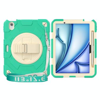 For iPad Air 11 2025 / 2024 Spider Rotation Handle Silicone Hybrid PC Tablet Case(Cyan Beige)