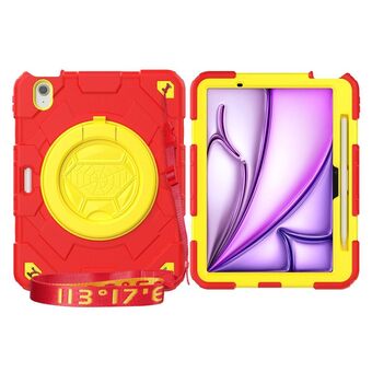 For iPad Air 11 2025 / 2024 Spider Rotation Handle Silicone Hybrid PC Tablet Case(Yellow Red)