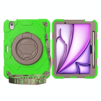 For iPad Air 11 2025 / 2024 Spider Rotation Handle Silicone Hybrid PC Tablet Case(Coffee Green)