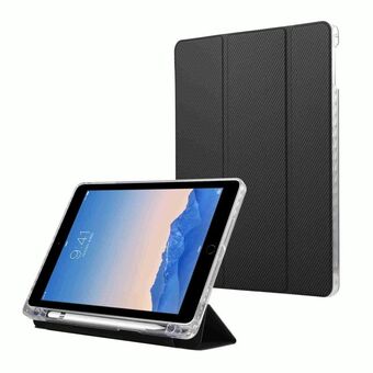 For iPad 2025 / 2022 Carbon Fiber Clear Acrylic 3-Fold Leather Tablet Case(Black)