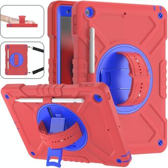 For iPad 10.2 2021 / 2020 / 2019 X Rotation PC Hybrid Silicone Tablet Case with Strap(Red Blue)