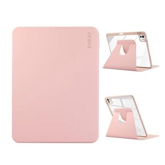 For iPad Pro Air 11 2024 ENKAY 360 Rotation PMMA Leather Smart Tablet Case with Pen Slot(Pink) (ENKAY)
