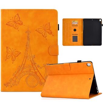 For iPad Air / Air 2 / 9.7 2017 / 9.7 2018 Tower Embossed Leather Smart Tablet Case(Khaki)