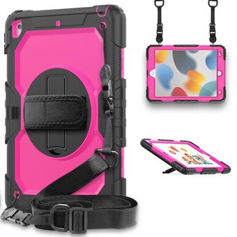 For iPad 10.2 2021 / 2020 / 2019 Shockproof Silicone + PC Protective Case with Holder & Shoulder Strap & Pen Slot(Black + Rose Red)