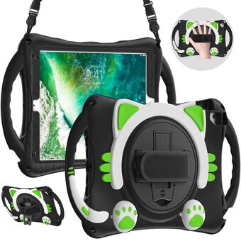 Cute Cat King Kids Shockproof Silicone Tablet Case with Holder & Shoulder Strap & Handle For iPad 9.7 2018 / 2017 / Air / Air 2 / Pro 9.7(Green)