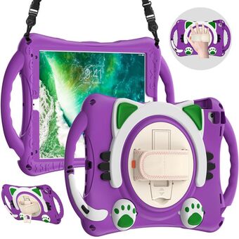 Cute Cat King Kids Shockproof Silicone Tablet Case with Holder & Shoulder Strap & Handle For iPad 9.7 2018 / 2017 / Air / Air 2 / Pro 9.7(Purple)
