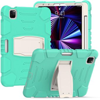For iPad Pro 11 2022 / 2021 / 2020 / 2018 3-Layer Protection Screen Frame + PC + Silicone Shockproof Combination Tablet Case with Holder(Mint Green)