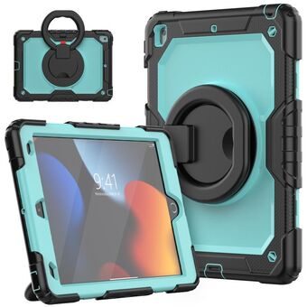 For iPad 10.2 2021 / 2020 / 2019 Silicone + PC Tablet Case with Shoulder Strap(Black+Light Blue)
