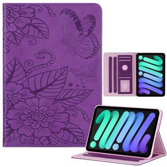 Θήκη Smart Tablet από Δέρμα με ανάγλυφο σχέδιο Πεταλούδας και Λουλουδιών για iPad mini 6 / mini 2024 (Μαύρο)