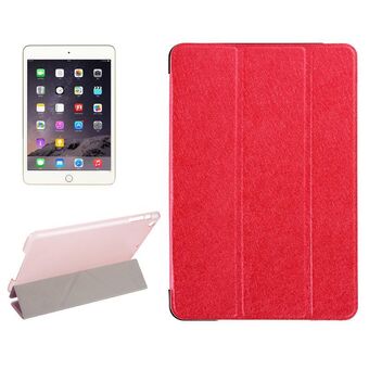 Θήκη δέρματος με υφή μετάξης και οριζόντια αναδίπλωση με βάση τριών πτυχών για iPad mini 4 (Ματζέντα)