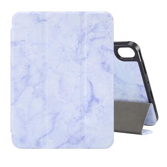 For iPad mini 6 / mini 2024 Marble Texture Smart Leather Tablet Case with 3-Folding Holder & Pen Slot(Blue)