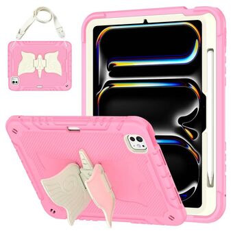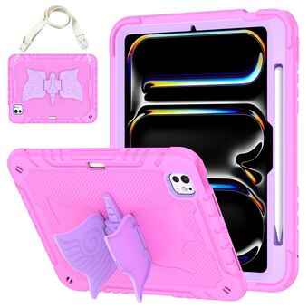 For iPad Pro 11 2024 Kickstand PC Hybrid Silicone Tablet Case with Strap(Pink Purple)