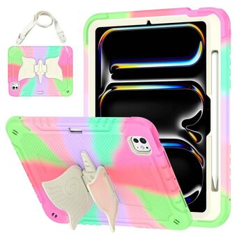 For iPad Pro 11 2024 Kickstand PC Hybrid Silicone Tablet Case with Strap(Colorful Rose Gold)