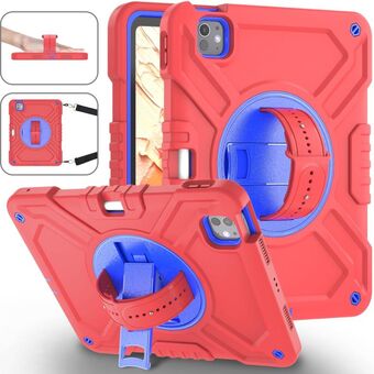 For iPad Pro 11 2024 X Rotation PC Hybrid Silicone Tablet Case with Strap(Red Blue)
