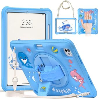 For iPad Pro 11 2024 Dolphin Rotation Kickstand Silicone Hybrid PC Tablet Case(Blue)