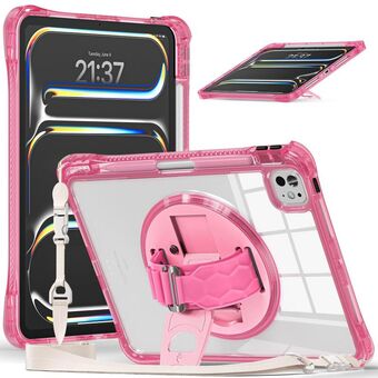 For iPad Pro 11 2024 Rotation Grip Holder TPU Hybrid Clear PC Tablet Case(Red Rose)