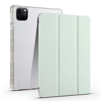 For iPad Pro 11 2024 3-fold Clear TPU Smart Leather Tablet Case with Pen Slot(Light Green)