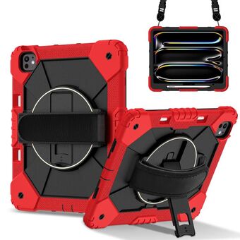 For iPad Pro 13 2024 Silicone Hybrid PC Tablet Case with Holder & Shoulder Strap(Colorful Pink)