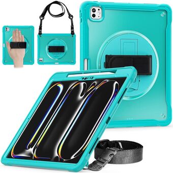 For iPad Pro 13 2024 Heavy Duty Hybrid Tablet Case with Hand Grip & Strap(Light Blue)