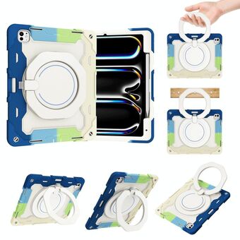 For iPad Pro 13 2024 Armor Portable Rotating Ring Holder Silicone Tablet Case with Pen Slot(Colorful Blue)